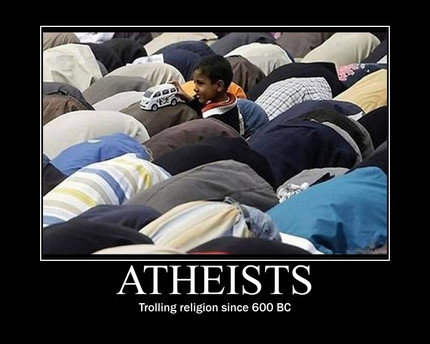 Hillarious. Didn't have a laugh this good for awhile. Such a wonderful manifestation of the earth-shattering stupidity that only Atheists can posess.