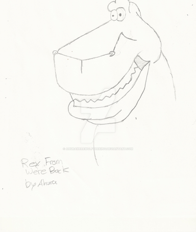Finally got around to practicing Rex from Universal's "We're Back! A Dinosaur's Story. The farthest left and right head shots are my own take. I was thinking that he may still have some savagery if he gets extremely angry. The middle and full body pose are done with some reference. Though I may have made him a bit too pudgy. More to come in the future.Related content