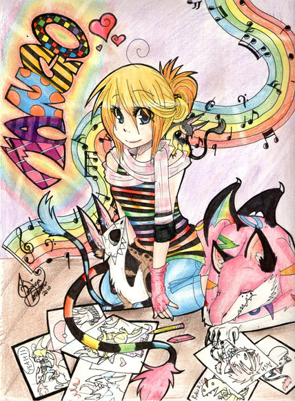 Here I wanted to do something different than usual, so I outlined Rin and colored her and her painting, as well as coloring all of her paints. But wanted the entire focus to be on Rin sitting there and as such it seems as if she pops out of the pencil art more. She also seems to be currently sitting and thinking, looking back and pondering what to do next.