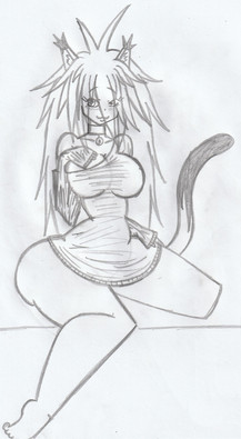 I like to use her for fan service of course, but overall her character is not as steeped in sexual behavior or perversion that many other characters with humonguous breasts usually tend to be. She's got quite an aversion to most sexual situations and her awkward attitude combined with her rather angry disposition combine with people's focus on her breasts and rather overweight frame and give her an awkward way of seeing the world and of reacting towards it. I use her breasts as an obstacle because though they may not be wholly realistic in proportion, her reactions to them at that size tend to be.