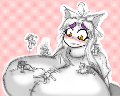 "awww...poor katrina is sad now..." Hiro pounces her from behind hugging her and giving her a cookie larger then her head. "don't listen to her! it's not disgusting!" Hiro shouts glaring at the other girl andpurring loudly.