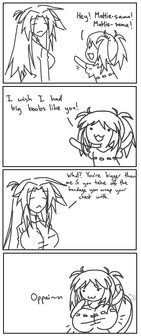 my little comic entry for 's oppai contest. I doubt I'll win, but I just HAD to enter. hope ya enjoy, and now someone has to cheer Katrina up! lol.oh, and those are matt's characters, Stick Matt and Mattie.