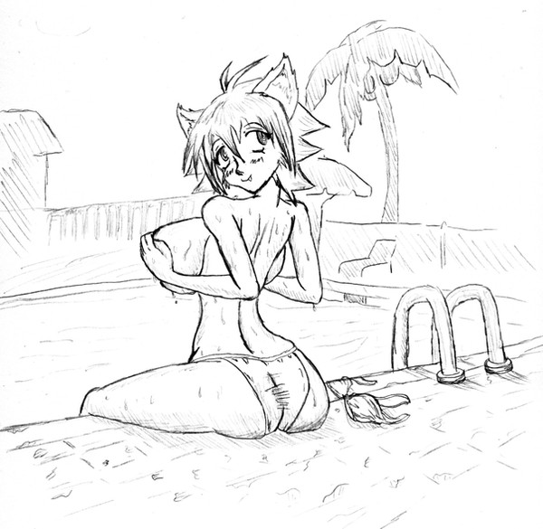 The water rippled with every movement. Gently, and rhythmically shifting through the clear liquid. It didn't take much, even Katrina's breathing was enough to disturb her ample bust, and in turn, send the water wiggling along with her.She leaned against the edge of the pool, letting her wet arms warm themselves on the hot concrete. It burned at first, causing her to wince, but they felt almost numb after several seconds. She quickly splashed water on the spot in front of her and leaned down again. Much better this time, a lot cooler.