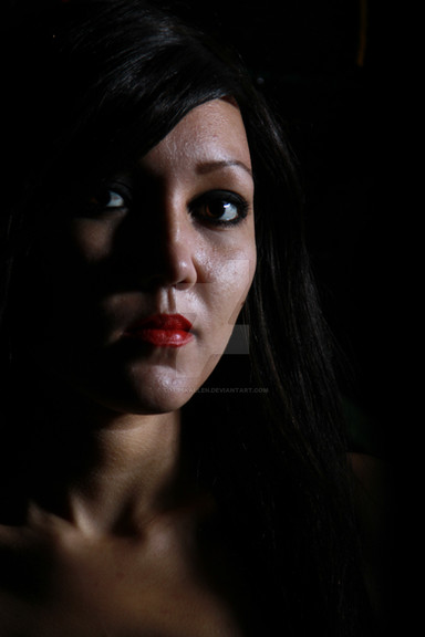 wow I love the shadows....especially how it makes the red lips stand out, nice shot!