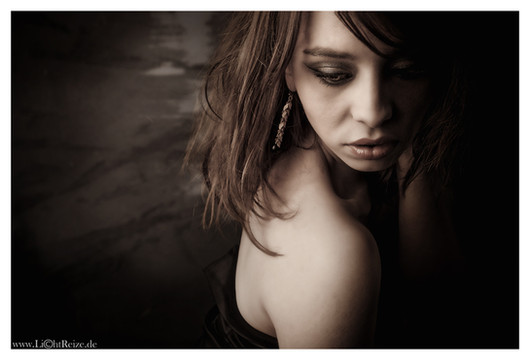 Great photo, there is like a sense of sadness in her eyes. Very dramatic, great job.