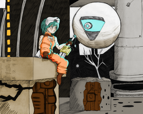 #fanart #robot #digitalart #originalcharacter #scifi #cityscape #comic #blackandwhite #blackandwhitedrawing #blackandwhitesketch #oc #nerdygirl #ocsoriginalcharacter #emmathemad