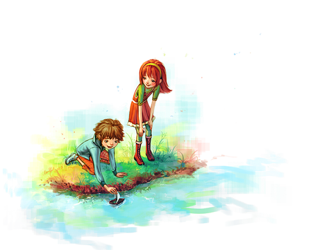 This is a very great illustration of a brother and sister sharing a wonderful and free moment.