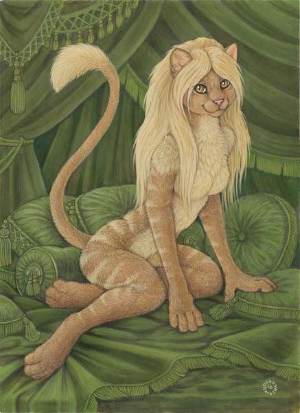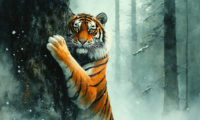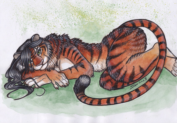 Tigress enjoy the warm sun while laying on the sprouts of spring.Mixed media