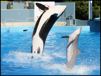 Im confused..Shouka doesnt share her tank with Bottlenose dolphins does she? I remember Kieko did and he didnt benefit from it, he got that rash around his pecs...