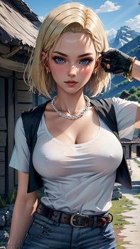 #ai #android18 #blonde #blondehair #dbzfanart #dragonballz #android18dragonball #dragonballsuper #ai_art #stablediffusion #stablediffusionart
