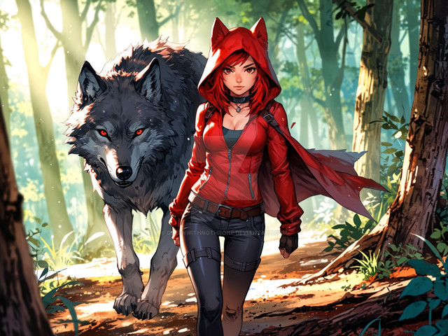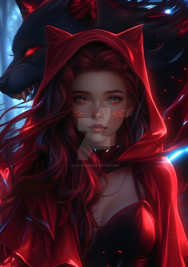 #digitalart #characterdesign #portrait #ai #dreamup #fantasycharacter #darkfairytales #redridinghood #wolf #wolfcharacter #red_riding_hood #spookymonth #redridinghoodfanart #ai_art