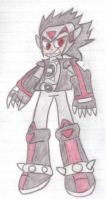 Thanks funnily enough the thing in the jar is a metroid and the Sword was originally his tail ( I wanted to give him a realistic human look) as for hair gel O2 hair is naturely like that I surpose XD