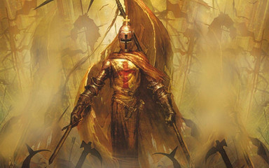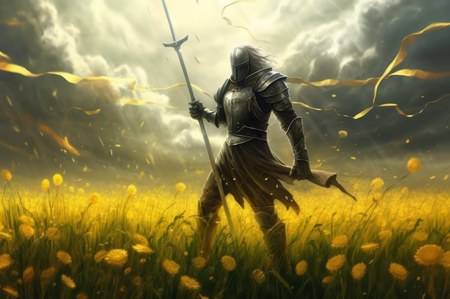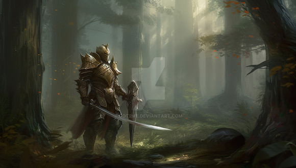 Your average time-traveling knight taking a leisurely walk through your average uber misty burnt swamp when they strike. What makes him a time traveler? Flux capacitor on his chest he stole from a Dolorean.Painted with Photoshop.
