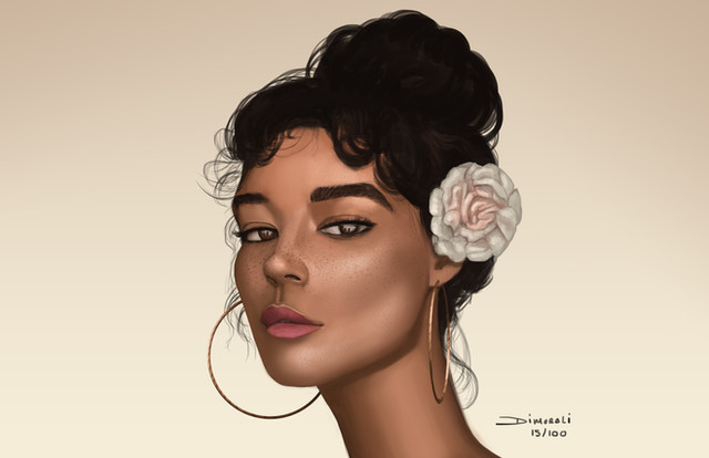 #darkskin #earrings #gold #golden #portait #realism #semirealism #semirealistic #spring #woman #detailhierarchy #curlyhair #digitalpainting #femaleportrait #jewelry #painting #realismportrait #realistic #warm #curlyhairedwoman