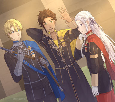 Byleth, Edelgard and Dorothea (c) Fire Emblem Three House, Nintendo