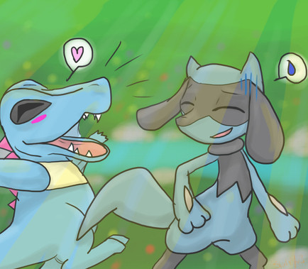 Poor Riolu. All he wanted was to give Nidoran a hug. And poor Nidoran, for not being able to be hugged.
