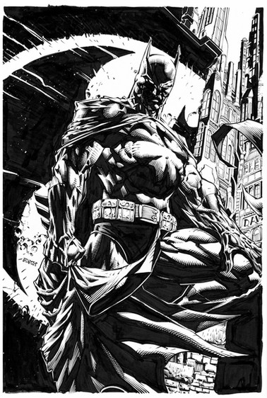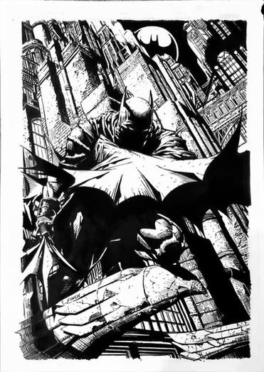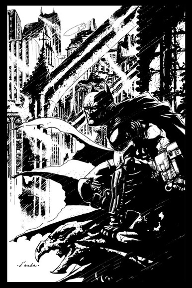 This is my inks on David Finch's amazing pencils. I used pens, brushed and white paint. I had some fun with the splatter using both black ink and white paint and think it worked quite well.Related content