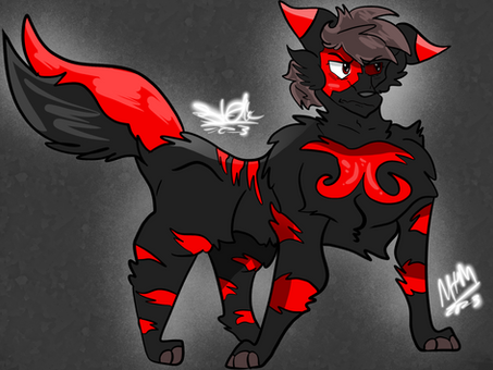 This is a new character I've been working on while doing commissions. This sexy demon wolfs name is Ajax, basically born from the ashes and is the reincarnation of the darkness itself...where everything gets its power in his world.YOU MAY NOT use my