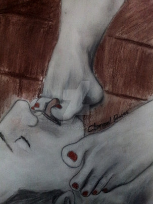 Photoshop + tablet.I know that there is something very wrong with this man's face (could be much much better), but I wanted to focus the art on the beautiful female foot, the object of burning lust