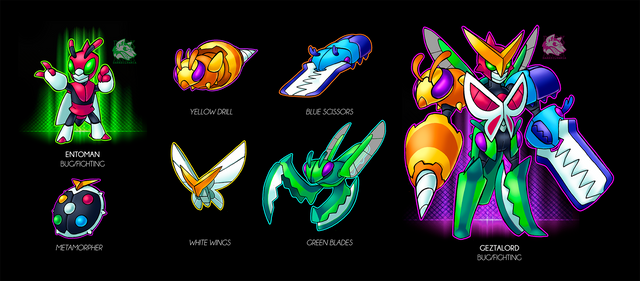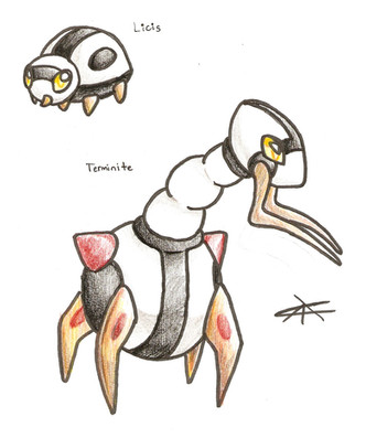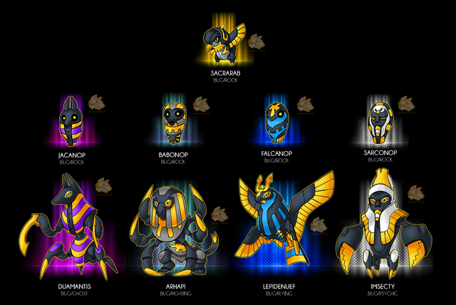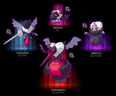 -"This pokemon is considered by any bug trainer as the rarest and most magnificent bug to ever live. Its body is made of parts of different bugs- scorpions, wasps, locusts, dragonflies, ants, butterflies and termites- all of which are as hard as titanium."