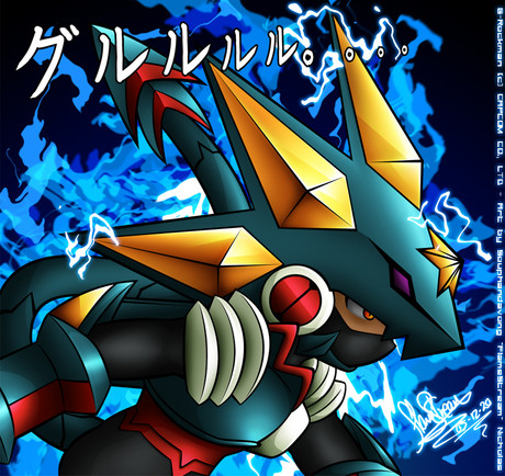 I played with lights on the Armor... I played around the theme of "Cold Steel" for this armor type. I took a more "human" approach to his Armor so that for the first time ever, people would relate to his Human Form. Inspirations include, Bahamut, Hakumen, and the original inspiration Magma Dragoon (Megaman X4).