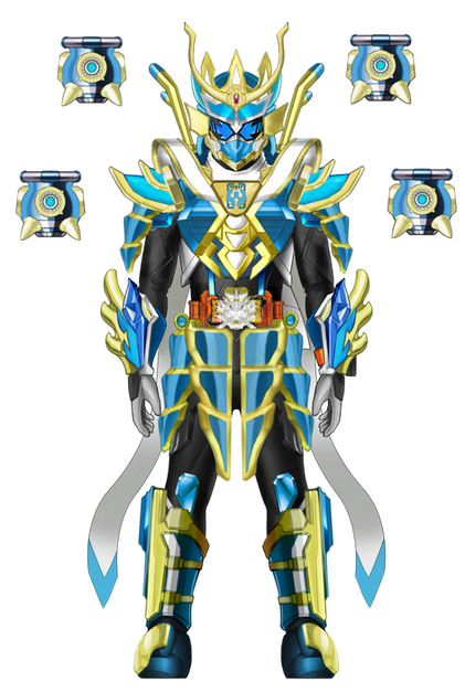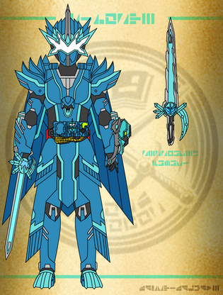 Lumiere Cygnus is Riposte's cyan primary form accessed by using the Lumiere Cygnus Wonder Ride Book in the Seiken Swordriver.