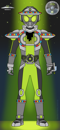 Once transformation is completed, the Taph Armor has several key features in its design to offer protection to the user. Like all Rider gears, the Taph armor manifests when the Taph Driver generates Photon Blood, a glowing substance generates the soft Sol Foam suit, Sol Metal armor, and Fullmetal Lung chest armor via traveling through the green Photon Streams that ends at the Photon Terminals at the gauntlet and Power Anklet greaves, the right Anklet having a Energy Holster that the Taph, Pointer can be connected to. The helmet is unique due to its Global Feeler Kasa hat to link up to Smart Brain's networks and Ultimate Finder visor that gives Taph incredible vision to see in darkness, giving the illusion of a glowing eye, and a limited amount of x-ray vision.