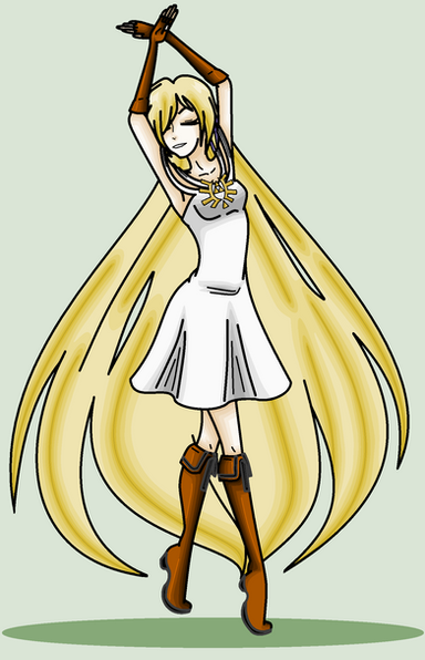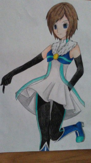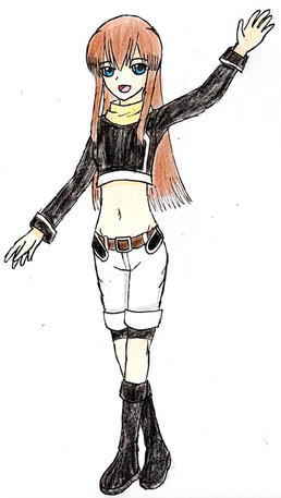 Co do anatomii, to nie wiem dlaczego wydaje mi się ona być jakaś płaska. o_o Co do ubioru, to nawet mi się podoba. Ogólnie obrazek jest fajny, chociaż wiem, że stać Cię na więcej.