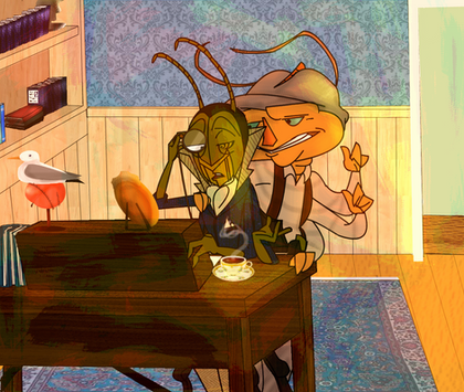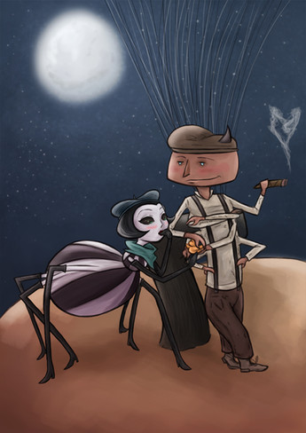 James and the Giant Peach - Mr. Centipede and Mr. GrasshopperI swear I will eventually try to tackle other characters...probably. Anywho, i just wanted to do a portrait of these two. And the idea was to dress Centipede up some, and dress Hops down. It gives it an interesting feel, I think.