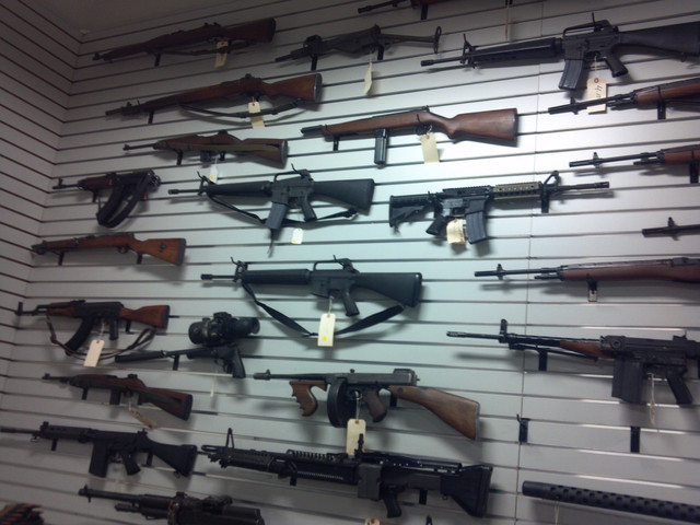 A variety of military assault rifles - some in use, others just prototypes.From top to bottom:
