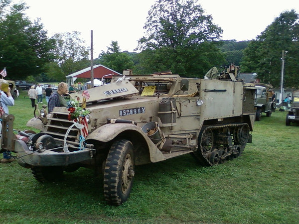 Next to the M4 Sherman tank or the Jeep, the M3 Halftrack is probably the most remembered Allied vehicle of World War II. Thousands were produced in by three different companies in numerous variants. The above vehicle, for example, is an M16A1 Gun Motor Carriage - a mobile anti-aircraft unit armed with four .50-cal machineguns in a quad turret - produced by White Motor Company. The most common use for the M3, however, was as an armored personnel carrier, shuttling troops across the battlefield while maintaining protection from small arms fire.M3 Halftrack Vehicle Stats: