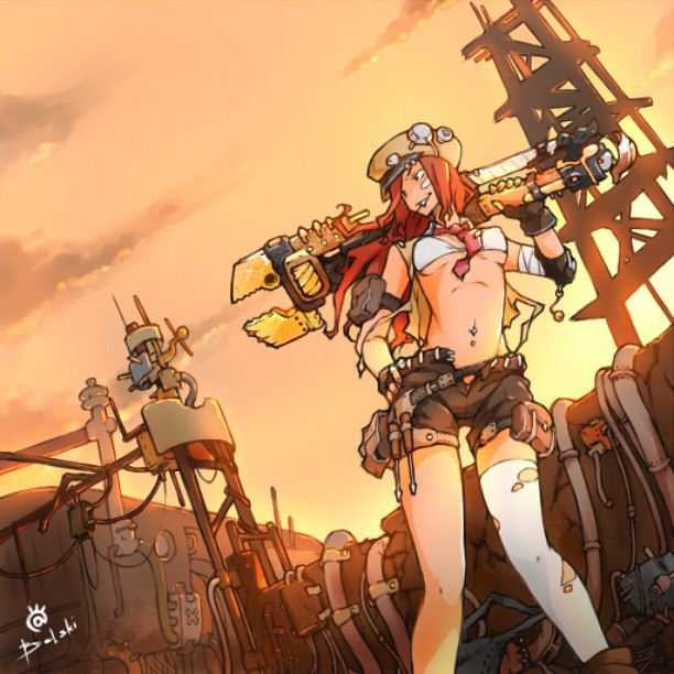 Also, that girl in the background is not dressed to operate heavy equipment. She's got exposed skin in some very uncomfortable places to get hit with shrapnel.