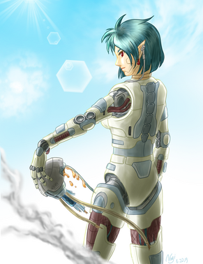 I'm not sure where robot ends, and flesh starts, or if she is all robot/mech etc ^ ^ Which I like!