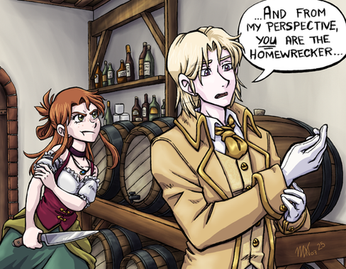 That expression is priceless, excellent job. Her body language is all about "I'm going to hurt you badly, and soon"