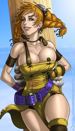 uh the flat chested girl that makes ehr own weapons,always wearing a gauntlet on her right arm?