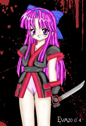 Bueno, primero ke todo, Holas xD!Este es un dibujo dedicado a todos los japoneses ke murieron en la luna hace 320 años, se trata de una chica ke, hmm.. pelea en epocas medievales como una guerrera shogun, ke.. pues.. ehmm... ella dice ke le encanta pelear desnuda porke asi tiene mas movilidad, y así distrae al enemigo, bueno no funciona cuando su enemigo es otra mujer xD!!
