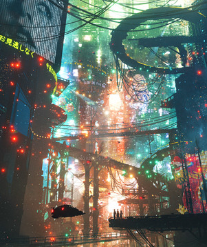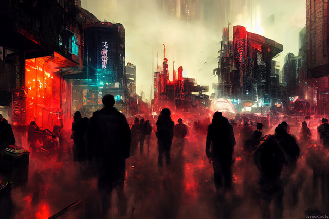 #city #crowd #digitalart #futuristic #neons #night #people #scifi #conceptart #gameart #photomanipulation #photoshop #photobashing #photobash