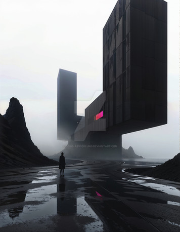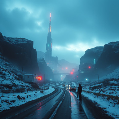 #architecture #blue #car #concept #dark #futuristic #night #scifi #snow #tower #simon_stalenhag #building