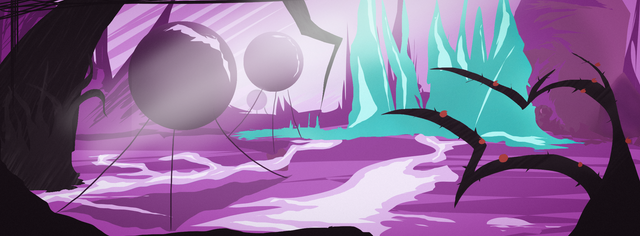 #blue #cave #conceptart #location #pink #purple #red #river #rocks #spheres