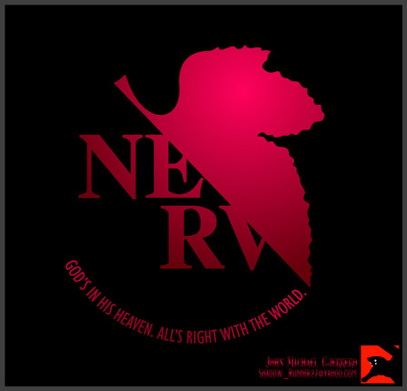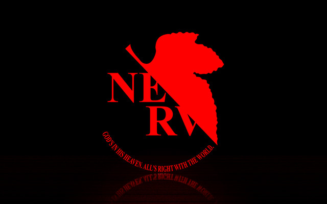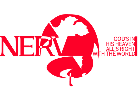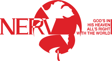Big ol' classical NERV logo... whatcha so nervous about that you gotta cover up your own name with a fig-leaf, NERV? Is it the shame of sin?
