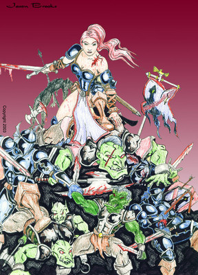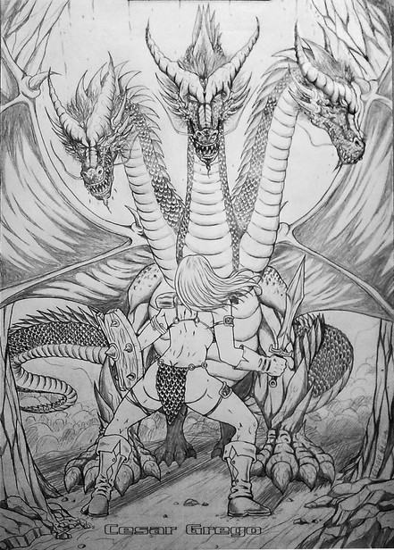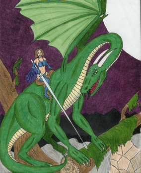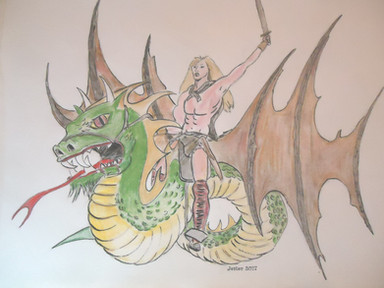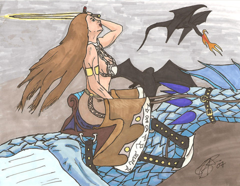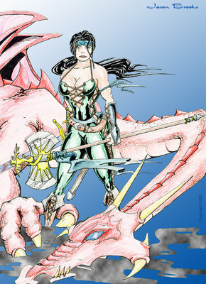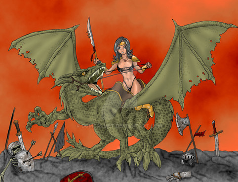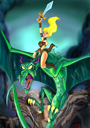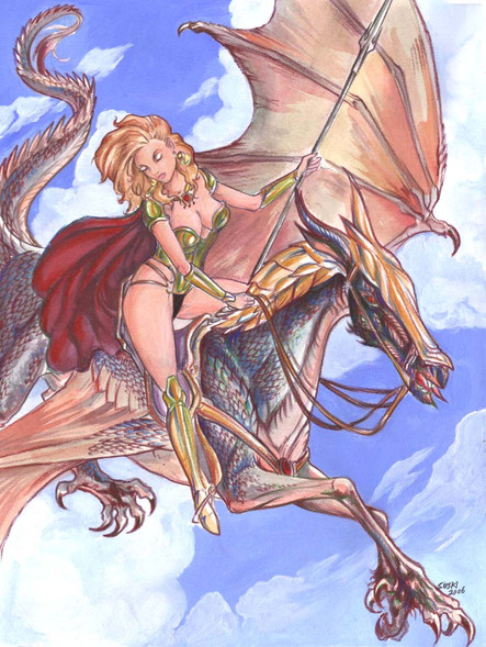 Wonderful fresh colors and a beautiful dynamic of the warrior couple,amazone/dragon.