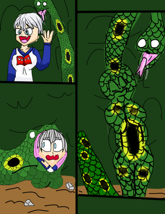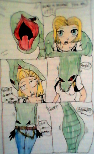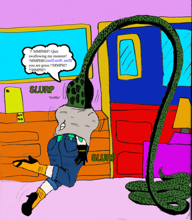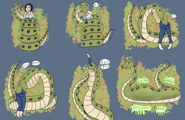 Requested by anonymous.A young Lady lets herself be eaten by a snake.