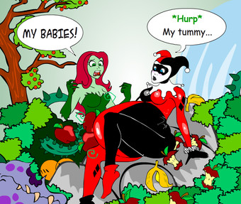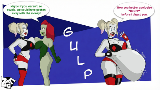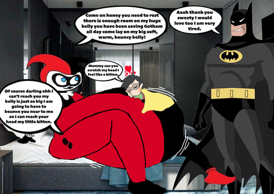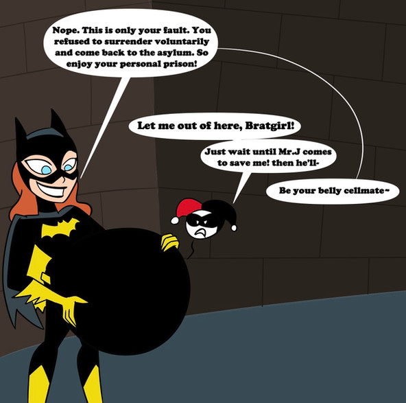 #batgirl #belly #breasts #huge #robin #vore #harleyquinn
