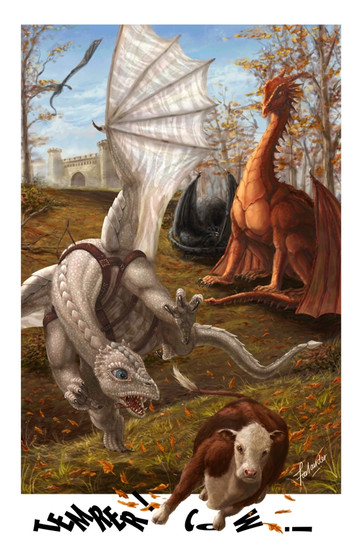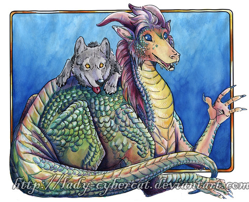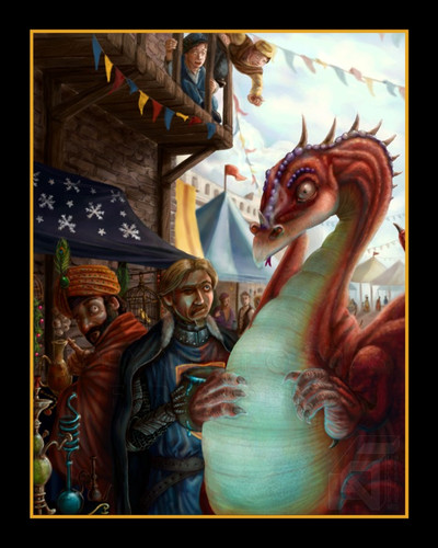 SOMEONE wanted dragons and puppies. And then practically made me post this at nerfgun-point.In an attempt to salvage my reputation, I shall simply say that the dragon and the puppy are probably friends only until the dragon wakes up hungry and winds up with a mouthful of fluffy lunch. HA.