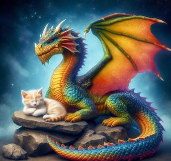 Ah..but what you don't know..is that is a Dragonhound puppy...that breed eats Dragons!..it's the Dragon that needs to worry!.. Glad they're friends