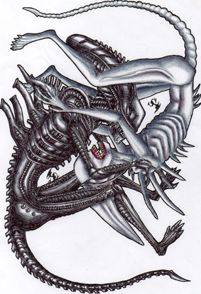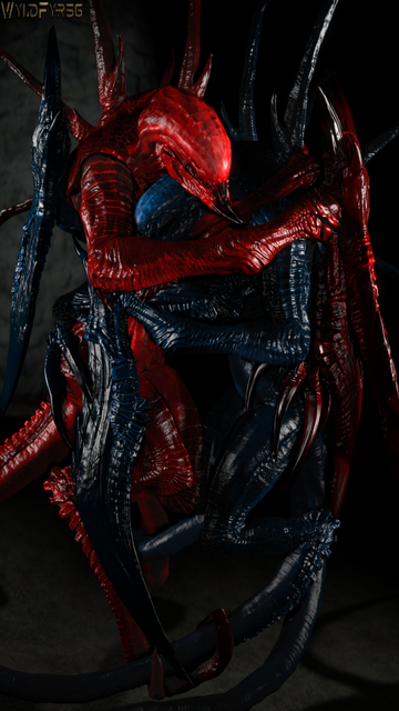 Having both won the competition to the Heleon Brewing Company, they couldn't resist stealing a sip of the experimental Fizzy Lifting Brew.Once they began floating up the shaft, Talon couldn't resist shedding her clothes and having fun with the Xenomorph.