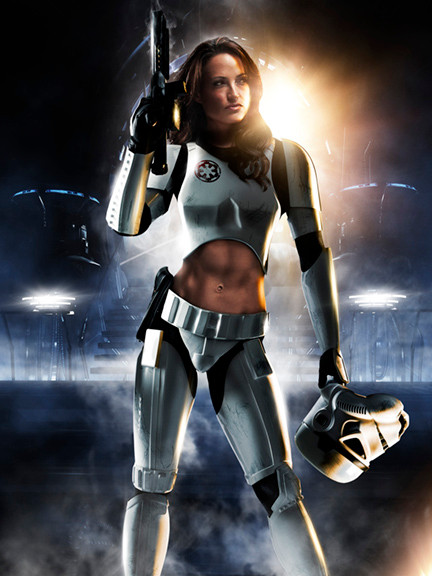 Sure is one alluring storm trooper and in this case the scant armour isn't terribly absurd from a protective point of view.Β It's not like storm trooper armour ever did that much in the first place.