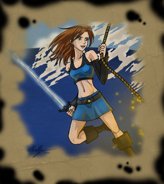 Celes Chere from Final Fantasy VI (copyright Squaresoft). I wish she wore this outfit from her concept art in the actual game. Celes is an awesome character. Strong, graceful and with a streak of innocence despite her military upbringing and very practical personality.Runic is an ability which is mostly pretty useless, but it's a cool concept. She absorbs magic with her sword. She holds it up and it goes 'ting!' hehe! ^_^