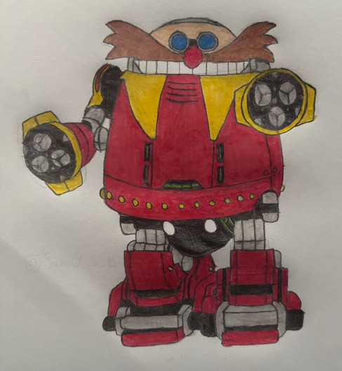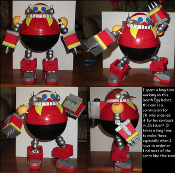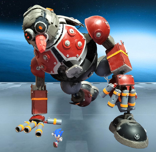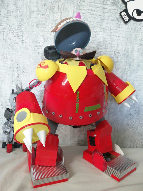 A figure of Death Egg robot, from Sonic 2 the movie.I used styrofoam and floor foam to make the base, lego pieces as joints, and shiny paper for details.