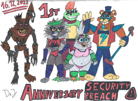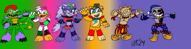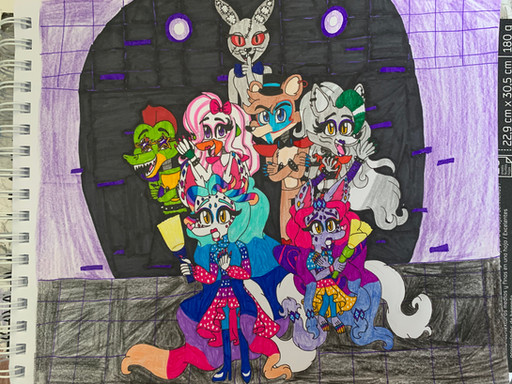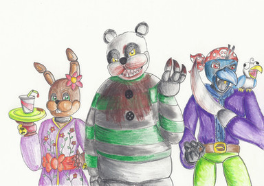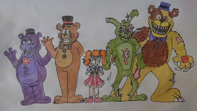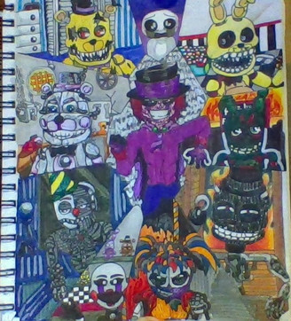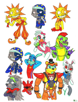 This image was supposed to be for DTYS (draw this in your style) challenge hosted by SummerBerriBear .I think I may went too far from original art, making Glamrocks adults, adding some characters like Burntrap, Nightrock, Daycare Attendant and Eggtrap.